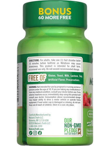 Catch up on some much needed ZZZs and slip into sweet dreams with our Melatonin! Naturally produced by the pineal gland, Melatonin plays an important role in our sleep cycle and can help with the occasional sleeplessness.† Our expertly crafted Melatonin provides you with 3 mg of this beneficial nighttime sleep aid per serving.† Bursting with a naturally delicious berry flavor, our vegetarian fast dissolves are a must-have for your nightstand, especially for those occasional nights when you’re tossing and turning.