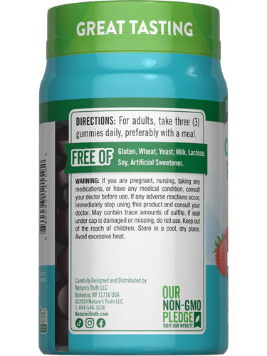 Nature’s Truth® Multi Collagen Gummies were created as a convenient and deliciously beautifying addition to your day. Each serving of these naturally flavored great-tasting gummies delivers 150 mg of several different varieties of collagen, including types I, II, III, V, and X. Collagen is a component naturally found in our skin and connective tissue, but many look to supplements for additional support. Nature’s Truth® makes it simple and delicious to receive additional collagen every day with these natural fruit flavored gummies.