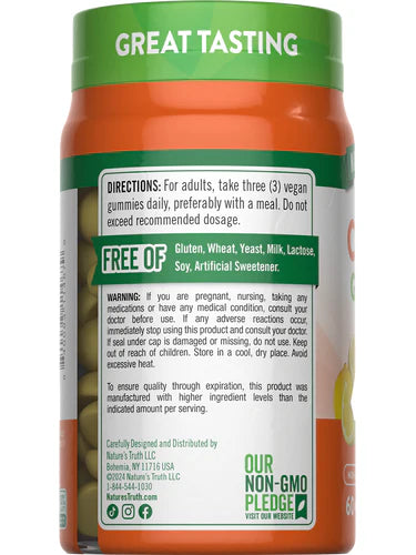 Each serving of our C + Zinc gummies delivers 250 mg of Vitamin C (as Ascorbic Acid and Sodium Ascorbate) and 11 mg of Zinc (as Zinc Citrate). This formula provides you with at least 100% of the daily recommended value of both essential Vitamin C and essential mineral Zinc. These vegan gummies are a delicious lemon flavor, making them an absolute delight to take. Gummy vitamins are also a wonderful alternative for those who dislike or have trouble swallowing pills.