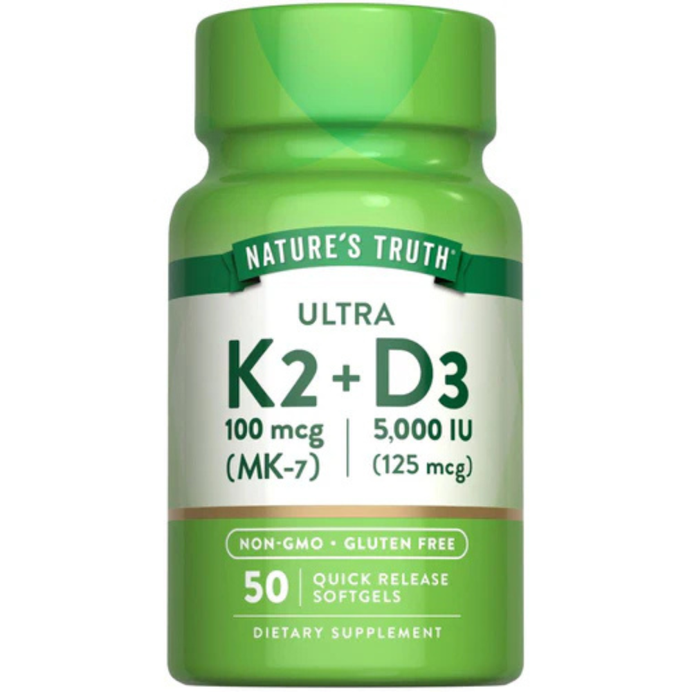 Our Ultra K-2 MK-7 plus D3 delivers 100 mcg of Vitamin K2 as Menaquinone-7 (MK-7), along with 125 mcg (5,000 IU) of Vitamin D3 as Cholecalciferol. With a convenient dose of just one quick release softgel per day, this potent vitamin complex allows for a convenient way to add important vitamins K2 and D3 to your daily routine.